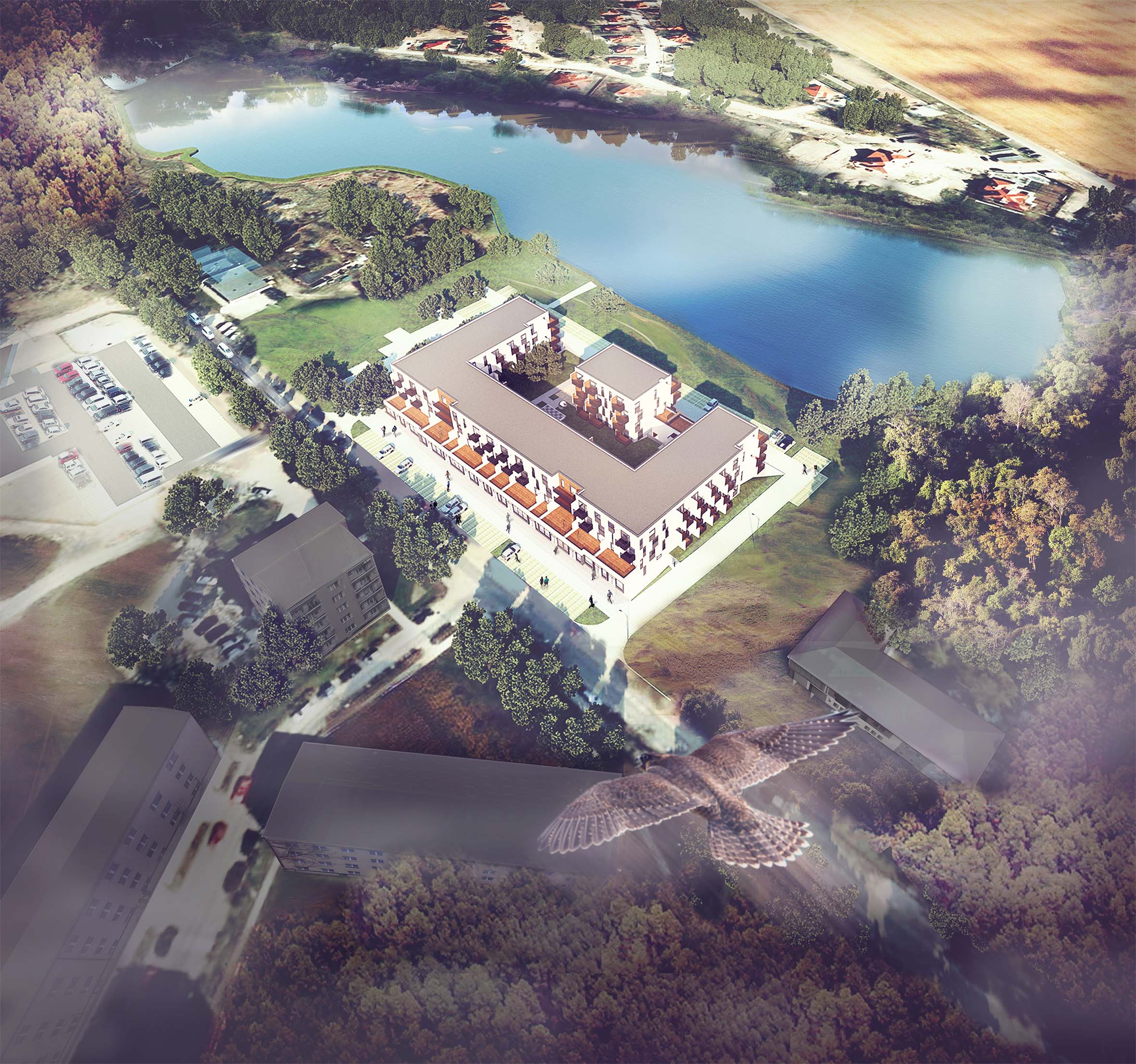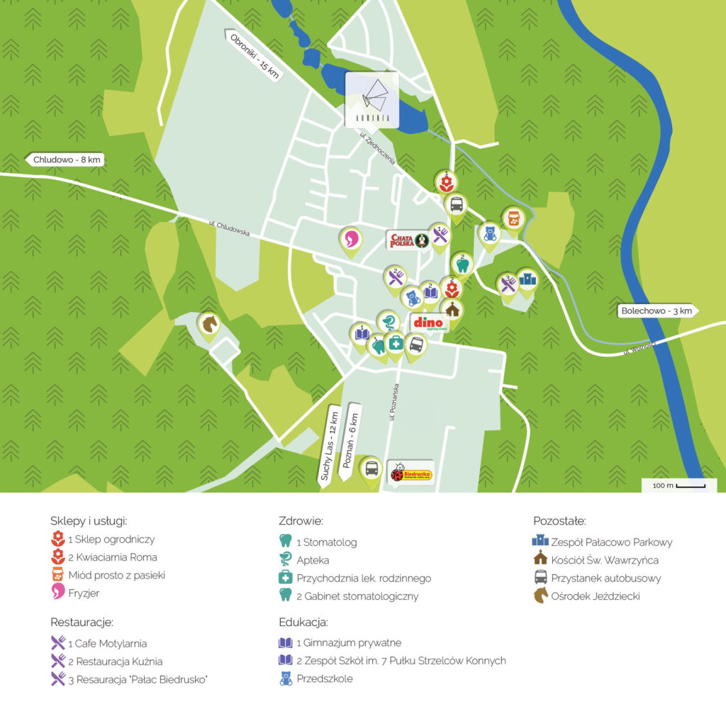 W ostatnich latach Biedrusko zyskało prestiż dzięki korzystnej lokalizacji w stosunku do miasta Poznania. Powoli staje się strefą podmiejską. Potwierdzeniem tej tezy jest włączenie Biedruska do poznańskiego systemu komunikacji miejskiej, który zapewnia bezpośrednie połączenie z Poznaniem, Murowaną Gośliną i Bolechowem. Inwestycja Aurinia zlokalizowana jest przy ul. Zjednoczenia 6. W budynku znajduje się 88 lokali mieszkalnych i 14 usługowych.  W ofercie sprzedaży lub wynajmu pozostają lokale usługowe w kondygnacji parteru o metrażach od 60,8  i 92,5 m2.